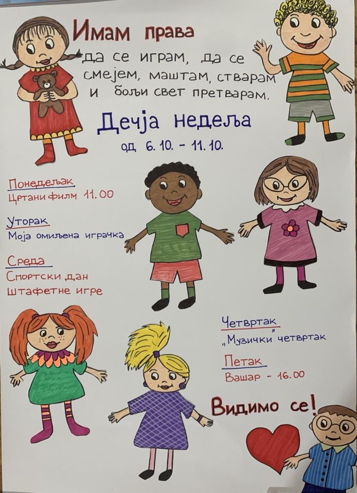3. октобар 2025.Пред нама је Дечја недеља чији је овогодишњи слоган: „Имам права да се играм, да се смејем, маштам, стварам и у бољи свет претварам“ а у складу с тим осмишљене су и активности у „малој“ и „великој“ школи.