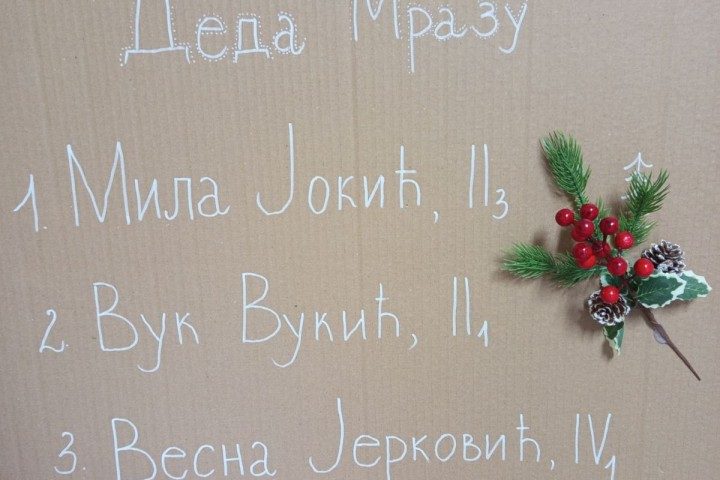 24. децембар 2025.Ученици млађих разреда, последњих дана пред распуст, писали су новогодишње жеље Деда Мразу и убацивали их у сандуче испред школске библиотеке.