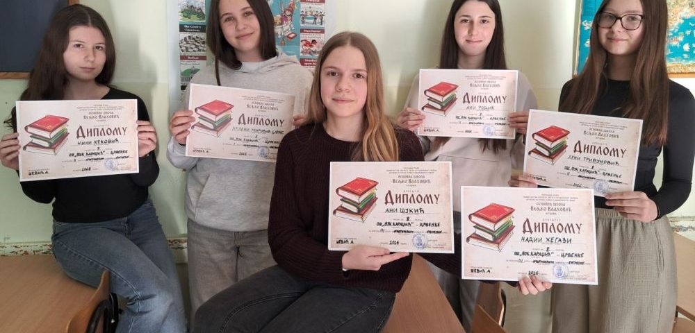 12. фебруар 2026.На општинском такмичењу из енглеског језика које се одржало 8.2. у Крушчићу, ученице наше школе оствариле су изузетне резултате, а ментор им је била наставница енглеског језика Љиљана Косовић: