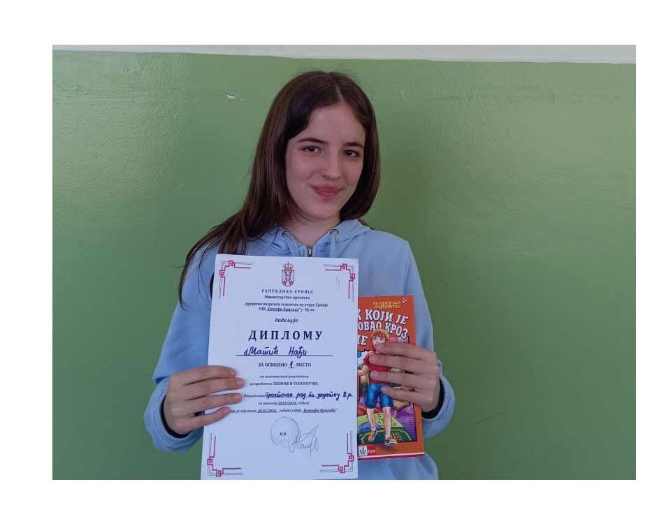 На општинском такмичењу из технике и технологије ученица 8. разреда, Нађа Матић освојила је 1. место у дисциплини практичан рад по задатку. Честитамо Нађи […]