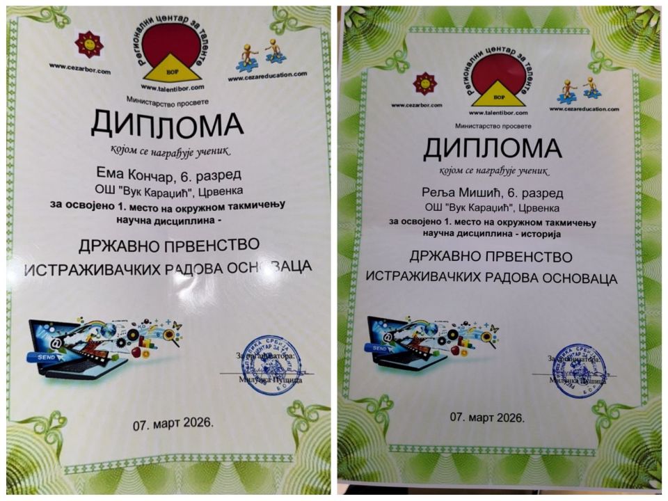 На окружном такмичењу из математике најуспешнији ученици су били: Алексеј Бојанић 3/3 – 3. место (учитељ Зора Антовић)Маша Ракић 3/3 – 3. место(учитељ Зора […]